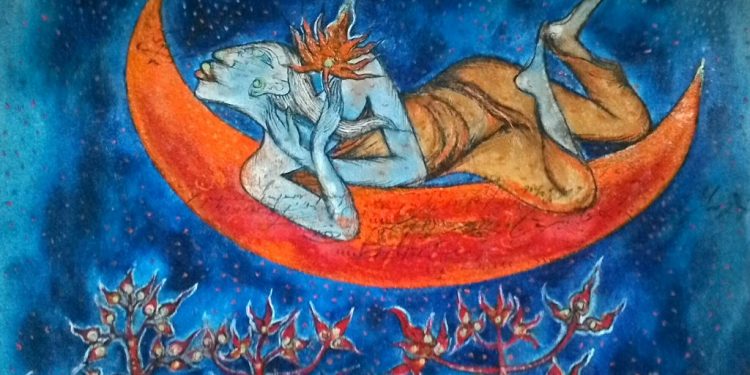 Nyoman Wirata, Perahu Bulan, 2011, 25x30cm, kanvas, akrelik