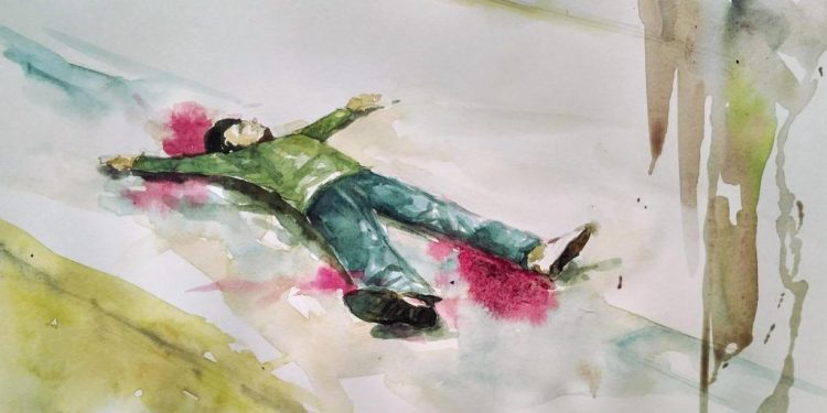 Pria itu, Marlon namanya, tergusur, jatuh telungkup berdarah parah di sekujur tubuhnya terutama kedua kakinya, tak dapat bergerak, seorang pria yang berdiri di sampingnya melihat dan berteriak, “Ya Tuhan, Tolong dia! Hey!”
