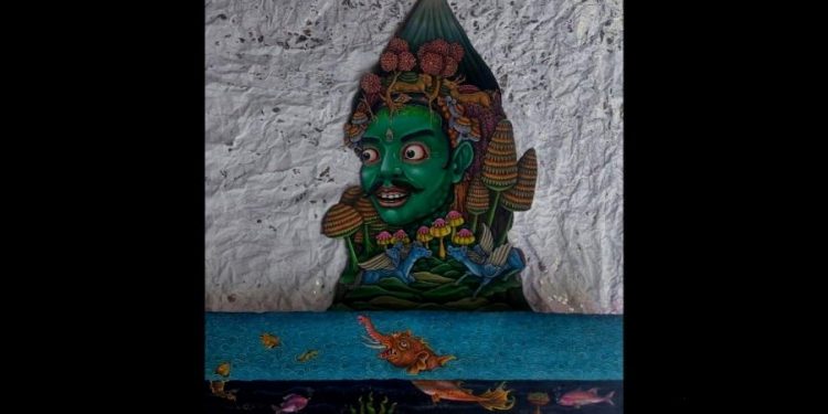 Aris menambahkan, beberapa karya saya sering menggambarkan gunung. Saat membuat karya ini tepat dengan maraknya pemberitaan Gunung Agung yang sedang aktif. Tertariknya, karena banyak pemberitaan yang aneh-aneh dan hingga saat ini belum terjadi apa-apa. (T)