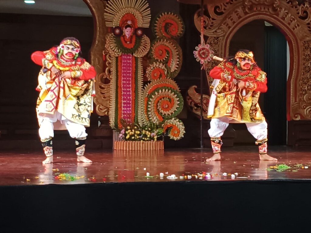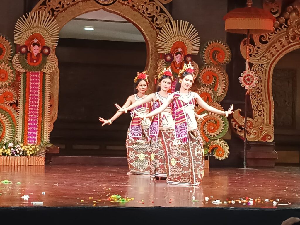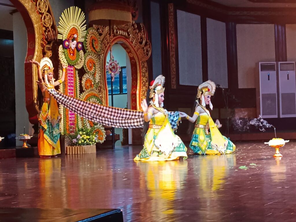 Anak-anak SLB Negeri 1 Gianyar yang mengawali pergelaran itu dengan menampilkan Tari Puspa Wresti, sebuah tari penyambutan yang diciptakan Prof, Dr. I Wayan Dibia dan I Nyoman Winda sebagi pencipta iringan. Tari ini dibawakan oleh 4 penari wanita dan 4 penari laki-laki dengan membawa property tombak. Mereka adalah penari berkebutuhan khusus, sehingga di depan mereka dipandu oleh guru tari dengan sebuah kode-kode atau isyarat.