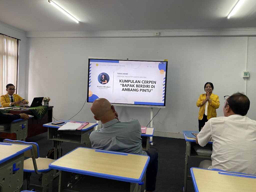 UNTUK pertama kalinya, Program Studi Pendidikan Bahasa Indonesia dan Daerah (PBID), Fakultas Bahasa dan Seni (FBS), Universitas PGRI Mahadewa Indonesia (UPMI) Bali meluluskan mahasiswa tanpa skripsi. Dua orang mahasiswa di prodi yang terakreditasi unggul itu menyelesaikan studi melalui jalur tugas akhir proyek inovatif karya sastra/jurnalistik. Kadek Windari menulis buku kumpulan cerpen Bapak Berdiri di Ambang Pintu, sedangkan I Wayan Dede Putra Wiguna menulis buku kumpulan berita kisah (feature) Bersama Seni di Sukawati. Dalam ujian yang dihadiri dosen pembimbing, penguji, serta mahasiswa Prodi PBID di Kampus UPMI Bali, Senin, 30 Juni 2025, karya kedua mahasiswa ini dinyatakan diterima sebagai tugas akhir proyek inovatif karya sastra/jurnalistik di Prodi PBID, FBS, UPMI Bali.