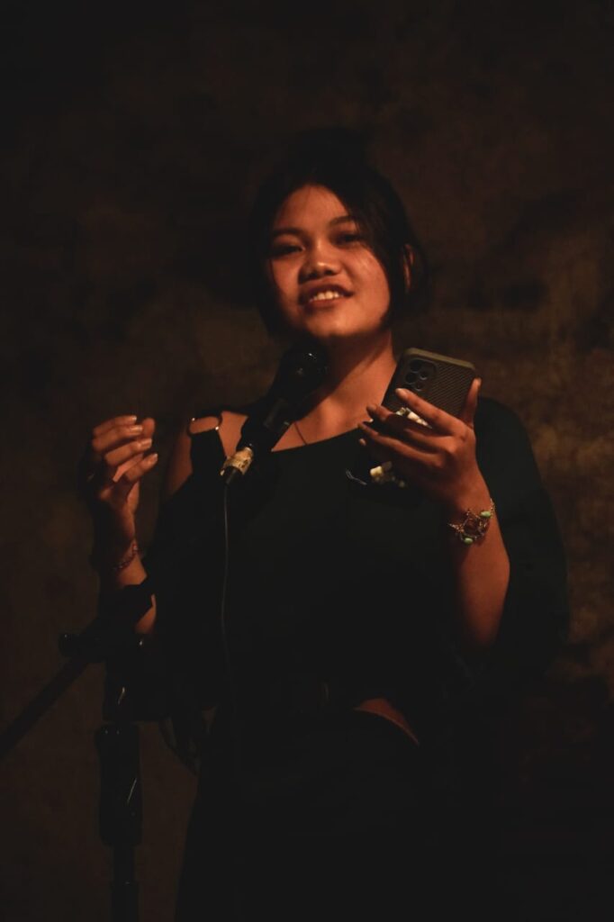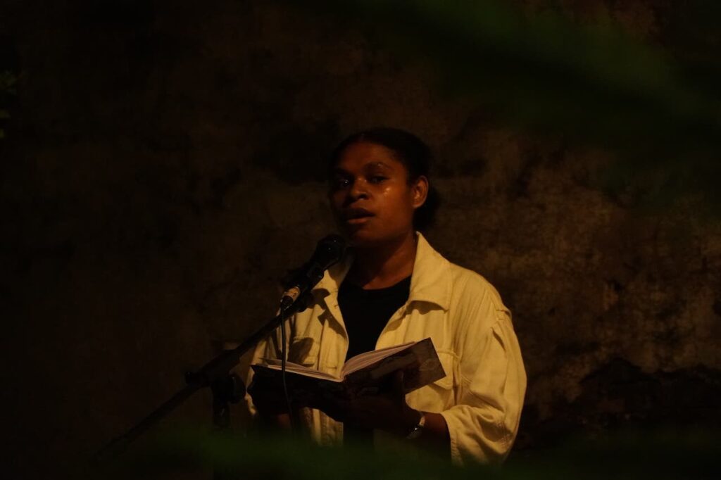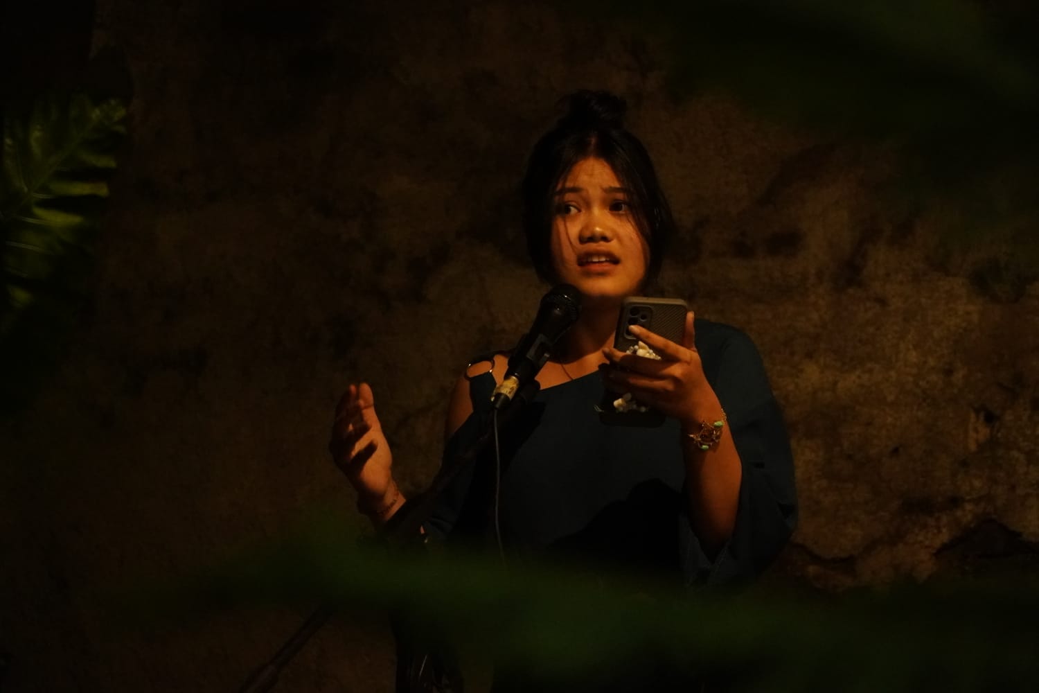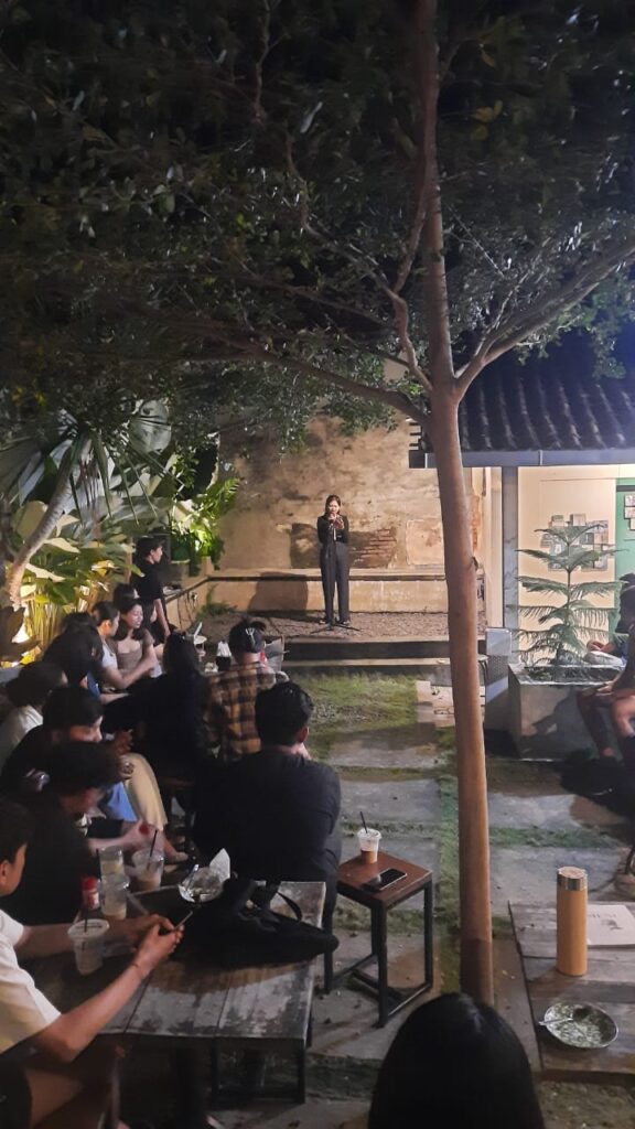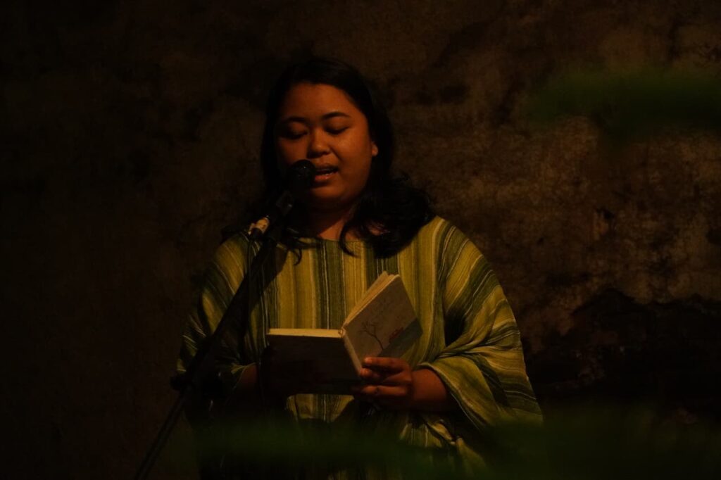Sebagai penutup, Sonia membawakan puisinya sendiri, “Prihentemen” ditulis pada tahun 2022. Salah satu puisinya berbunyi demikian: