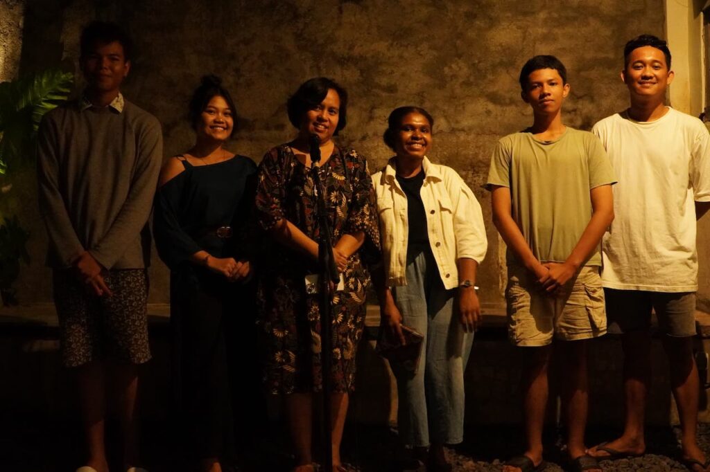 Kadek Wisnu Oktaditya, Putu Indah Apriliani, Chatrine Floretine Ndrotndrot, Gede Yoga Wismantara, Gede Bayu Sukradia Adi Putra (diwakili oleh Wira) pemenang nominasi pembaca puisi terbaik Rabu Puisi ke-11 di Kedai Umah Pradja | Foto: Komunitas Mahima
