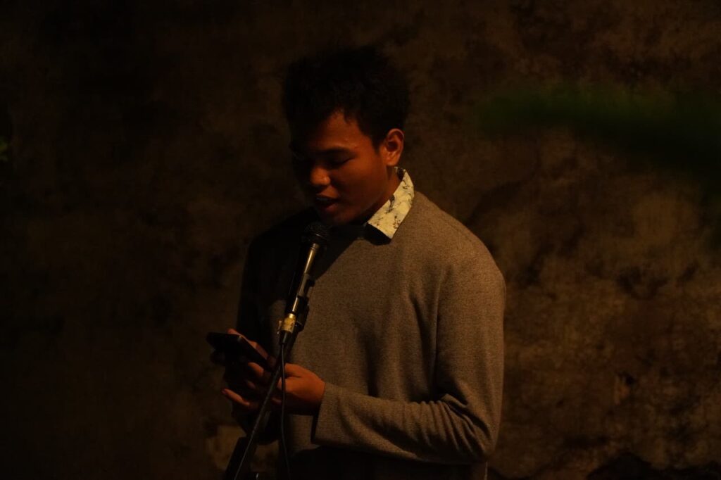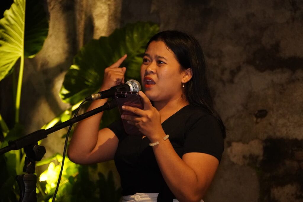 Kemudian Gede Bayu Sukradia Adi Putra, mahasiswa Institut Mpu Kuturan (IMK) membuat puisi spontan berjudul “Akan Dirindukan”. Dengan nada tegas, ia menyebut dirinya sebagai Bung Bayu saat tampil membacakan karyanya sendiri.