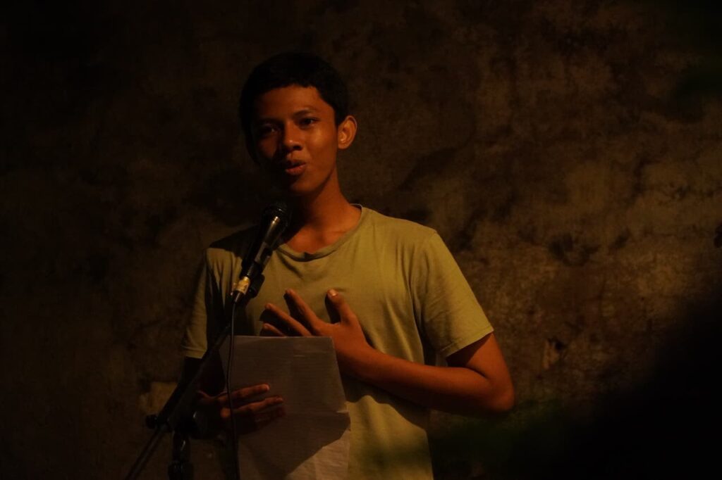 Kadek Wisnu Oktaditya, siswa SMKN 3 Singaraja, membaca puisi Sapardi.