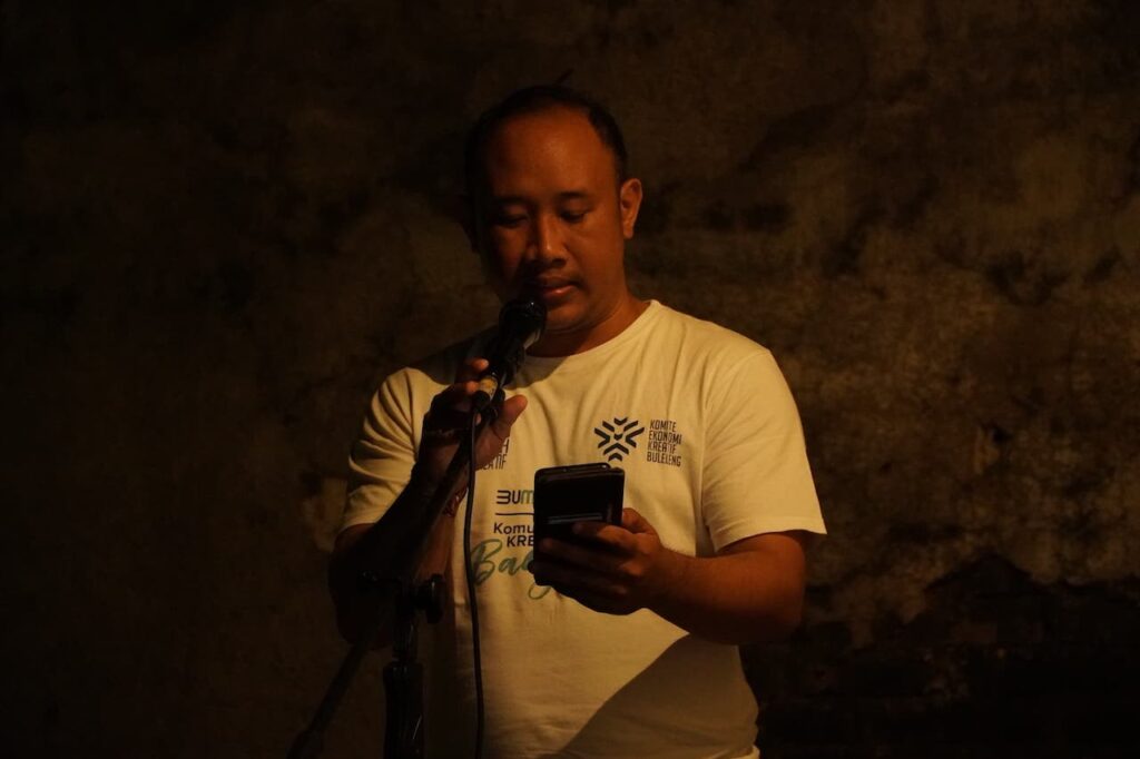 Gede Ganesha, komisioner Bawaslu Buleleng yang juga pemerhati sampah, membaca puisi sendiri sebagai hadiah ulang tahun untuk istrinya. Padahal istrinya tak ikut dalam acara itu. Tapi puisinya, bagi peserta yang hadir pada malam itu, mendengarkan dengan seksama puisi romantis untuk seorang istri itu.