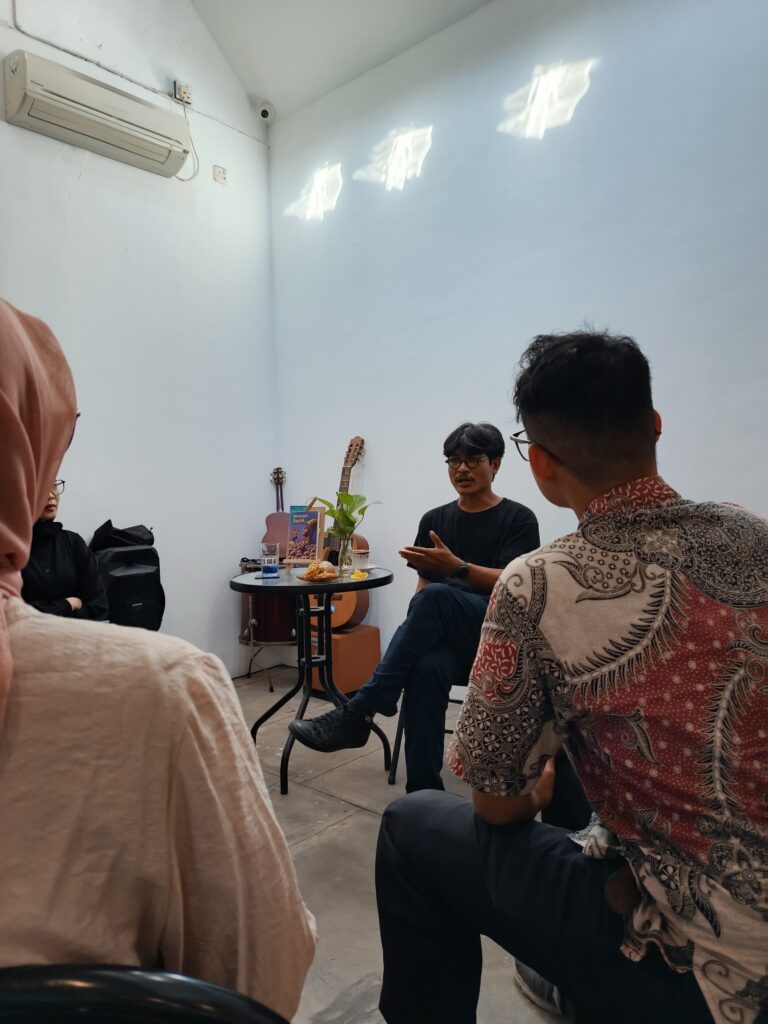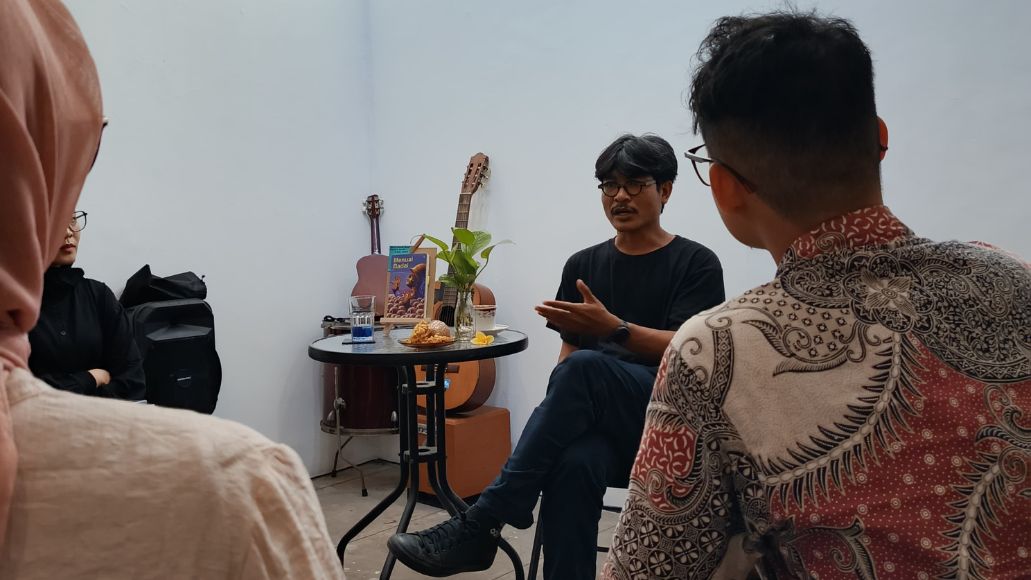 Di ruang belakang Perpustakan C2O, Juli duduk di depan beberapa orang yang siap mendengar apa dan bagaimana novel terbarunya itu lahir. Ini buku ketiga Juli, sependek ingatan saya. Buku pertamanya kumpulan cerpen Lelaki Kantong Sperma (2018) lalu yang kedua novel berjudul Kulit Kera Piduka. “Aku tertarik dengan isu ’65 karena sering mendengar cerita dari orang-orang tua di rumah dan beberapa teman di tongkrongan,” ujar Juli saat menjawab pertanyaan Fioriza—pemantik diskusi pada siang itu.