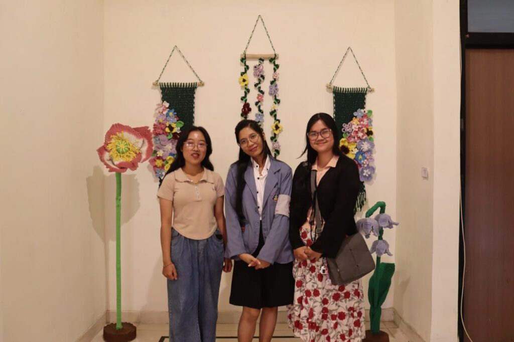 Tiga mahasiswi Universitas Pendidikan Ganesha berswafoto di Pameran Studi Khusus Mahasiswa Angkatan 2022 di Galeri Paduraksa FBS Undiksha | Foto: Dok. Pamitia