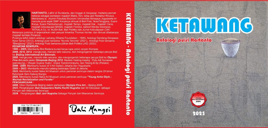 POLA dan bentuk gending ketawang puspawarna bernuansa klasik, menjadi pemantik puisi-puisi Mas Hartanto yang bertajuk Ketawang. Namun demikian puisi-puisi berjumlah 34 tersebut setelah dibaca, saya diajak bertamasya ke tempat-tempat yang khas dan memunculkan Lekhya. Momentum membaca Ketawang, antologi puisi Mas Hartanto, varalel dengan asosiasi kode visual pada ruang imajinasi saya. Bayangkan, menyingkap kata demi kata … Continue reading KETAWANG-LEKHYA — Pengantar untuk Buku Puisi Hartanto