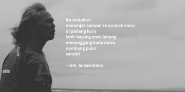 UPACARA KELAHIRAN (1) itu mataharimenanjak sampai ke puncak merudi padang kurulahir bayang anak lanangmenunggang kuda dewanembang puisisendiri UPACARA KELAHIRAN (2) kau dengar riak buihyang melintas di sisi sampanku?menggemericik isyaratkan surut akan tibabersiaplahlaut di detak jantungkutak lagi merontalayar sudah digulunguntuk kemudian merapatmencari pesisir heningtempat persinggahankumenambatkan rindu wajah letih dan keruhpenuh guratan kerutmenempuh waktuperjalanan panjang di akhir … Continue reading Puisi-puisi Gm. Sukawidana | Upacara Kelahiran