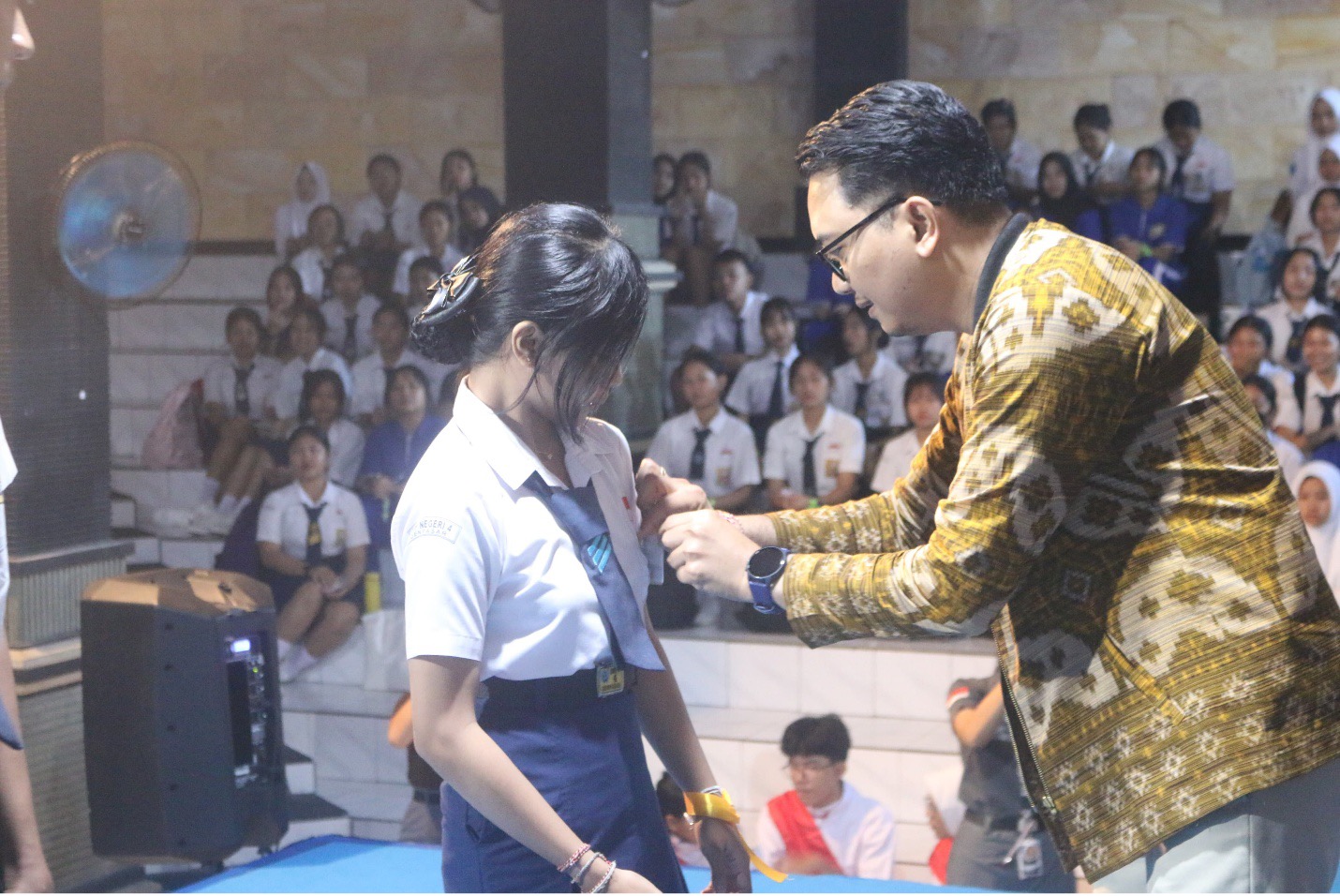 Simbolisasi pembukaan dilakukan dengan pemukulan gong, disusul penyematan atribut kepada perwakilan siswa baru. Sebuah gestur sederhana, tapi mengandung makna: kalian telah resmi menjadi bagian dari keluarga besar ini.