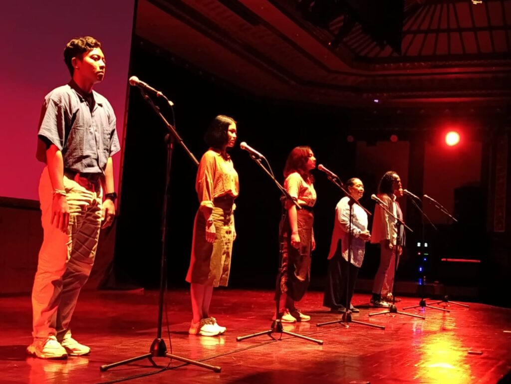 Meski garapan ini diwarnai dengan cerita-cerita, namun pada satu adegan tertentu, mereka bergerak merespon gemuruh musik dengan gesture tertentu. Menyiratkan pengalaman yang dialami di daerahnya masing-masing. Ada yang menari, berteater, menyajikan olah tubuh dan pantomime, dipadukan dengan musik dan layar dengan berbagai gambar yang mencerminkan mereka memang hidup dalam keberagaman.