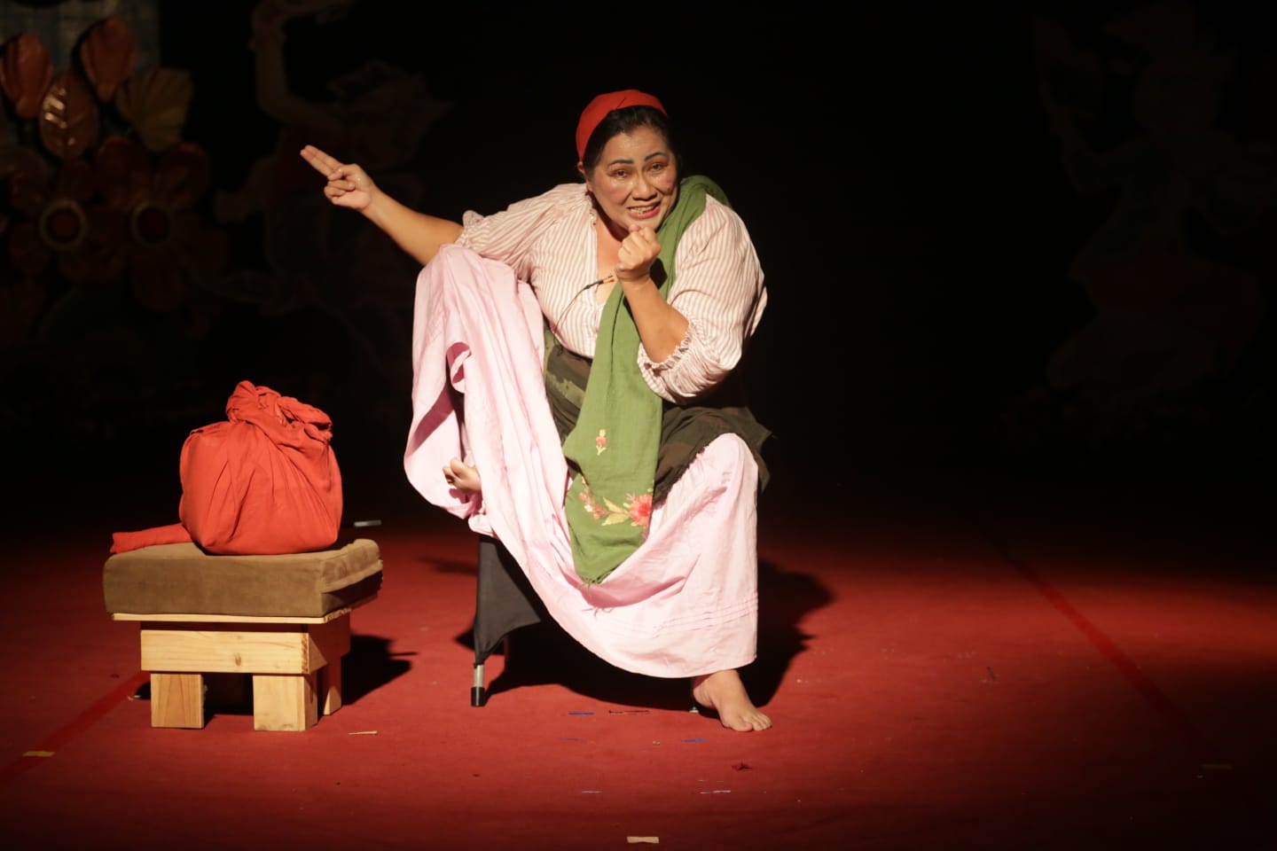 Ni Putu Suwartini dengan “Aku Bumi, Penjual Daging”, memerankan perempuan yang mengadu pada alam atas luka hidupnya, dari rumah tangga rusak hingga sunyi tak beranak. Naskah ditulis Gus Martin.