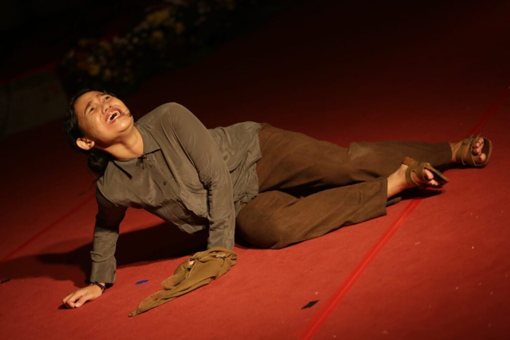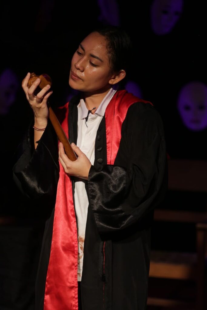 April Artison membawakan “Mata Tilaar”, tokoh hakim perempuan Minahasa yang dilema antara hukum dan nurani. Karya Gabrielle Abogado ini menggali ironi sistem hukum tanpa empati.