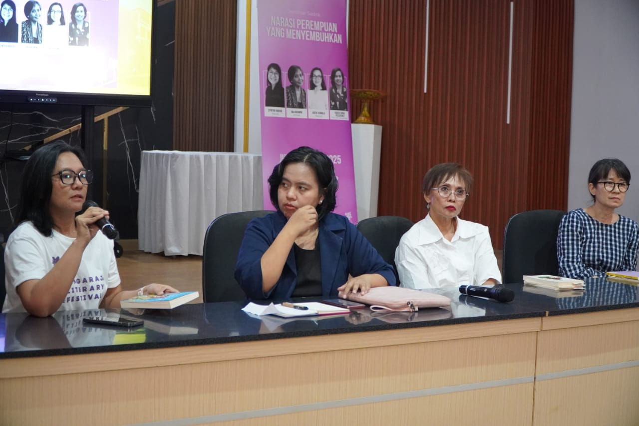 Mereka bicara pada seminar sastra dengan topik “Narasi Perempuan Yang Menyembuhkan” dalam acara Singaraja Literary Festival (SLF) 2025, Jumat, 25 Juli, di kampus Fakultas Bahasa dan Seni (FBS) Unidksha Singaraja.