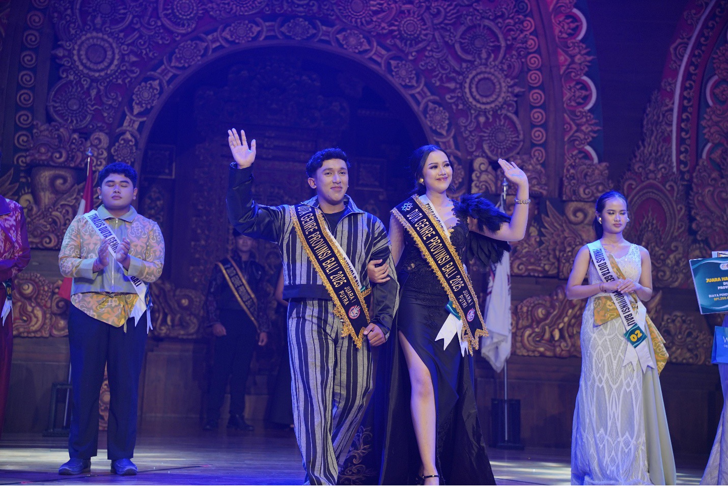 SORAK sorai memenuhi Ruang Taksu, Gedung Dharma Negara Alaya, Denpasar, pada Jumat, 25 Juli 2025. Sedari pukul 10.00 Wita, ruang megah itu disesaki ratusan pendukung dari sembilan kabupaten/kota di Bali. Di atas panggung, 10 besar pasang finalis tampil penuh percaya diri dan totalitas, mempersembahkan yang terbaik bukan hanya untuk meraih gelar, tapi juga membawa misi: menjadi teladan generasi muda Bali yang sehat, cerdas, dan ceria.