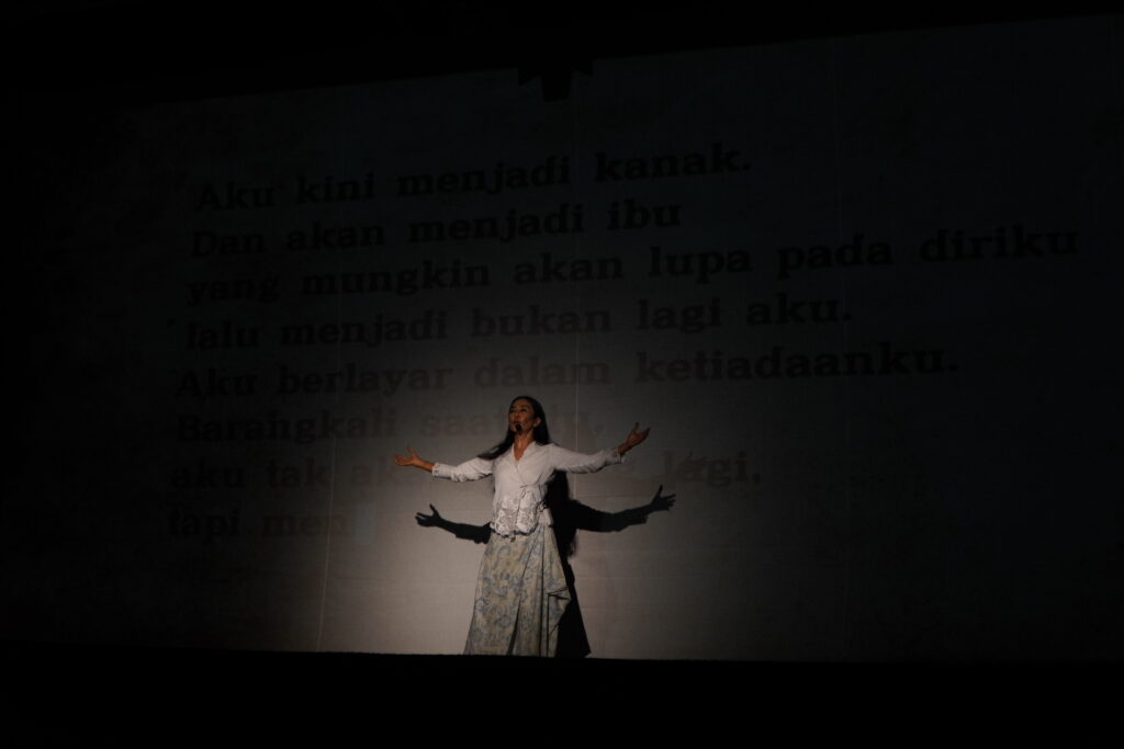 Ayu Laksmi dalam pertunjukan Apabila Aku Kembali dan Mengobati Diri Sendiri di panggung Singaraja Literary Festival 2025 | Foto: Dok. SLF