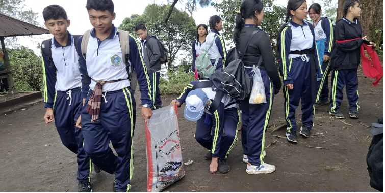 Bersih-bersih sampah di puncak | Foto: Dok. SMKN 1 Petang