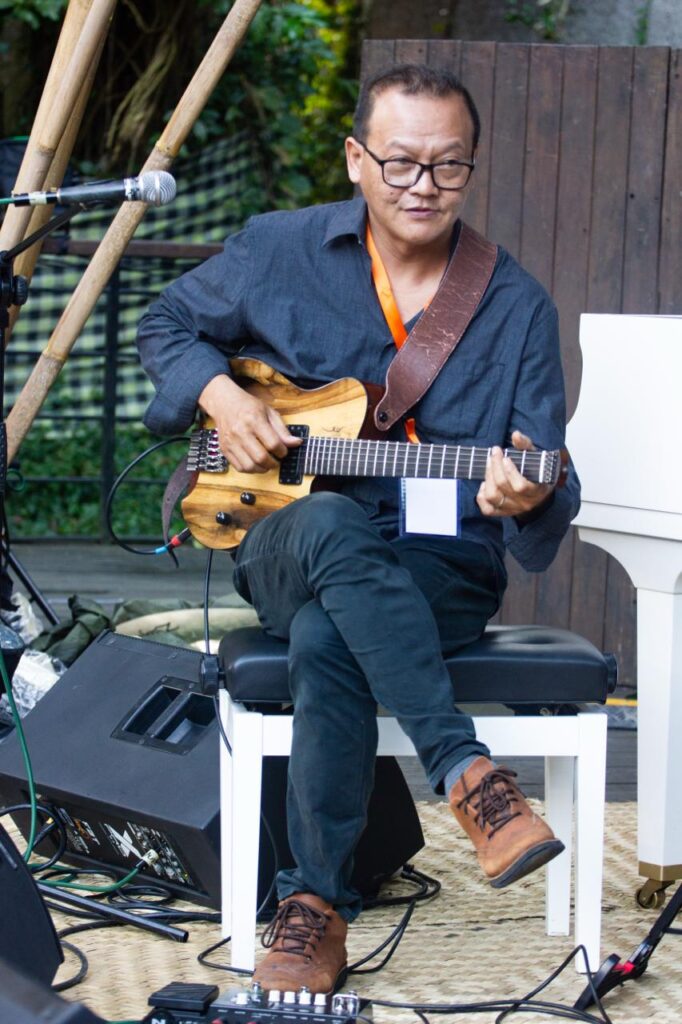 Pembukaan set mereka seperti undangan berbisik. Yuri memetik nada-nada ringan, seperti melukis sketsa di udara. Benny menjawab dengan warna-warna yang tidak pernah sama, sementara Fendy menahan waktu dengan bass-nya yang berdengung rendah, seakan ingin kita bernapas bersama mereka. Tidak ada kesan ingin “menghibur massa”. Ini musik yang hidup dari percakapan, bukan atraksi.