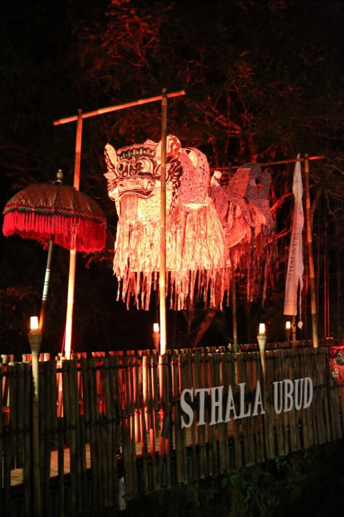 SEORANG wisatawan asal Jerman berhenti sejenak di tengah jembatan kecil yang membentang di atas Sungai Wos. Ia menatap ke atas, seolah baru saja menemukan karya seni di tempat yang tak disangka. Di atas kepalanya, sebuah layangan barong tergantung diam, bergoyang pelan ditiup angin malam. Cahaya lampu menyorot tubuhnya yang berambut pirang, sementara wajahnya memantulkan kekaguman. Tak jauh dari sana, suara musik jazz mengalun lembut dari Subak Stage, menyatu dengan gemericik air dan suasana Ubud yang teduh.