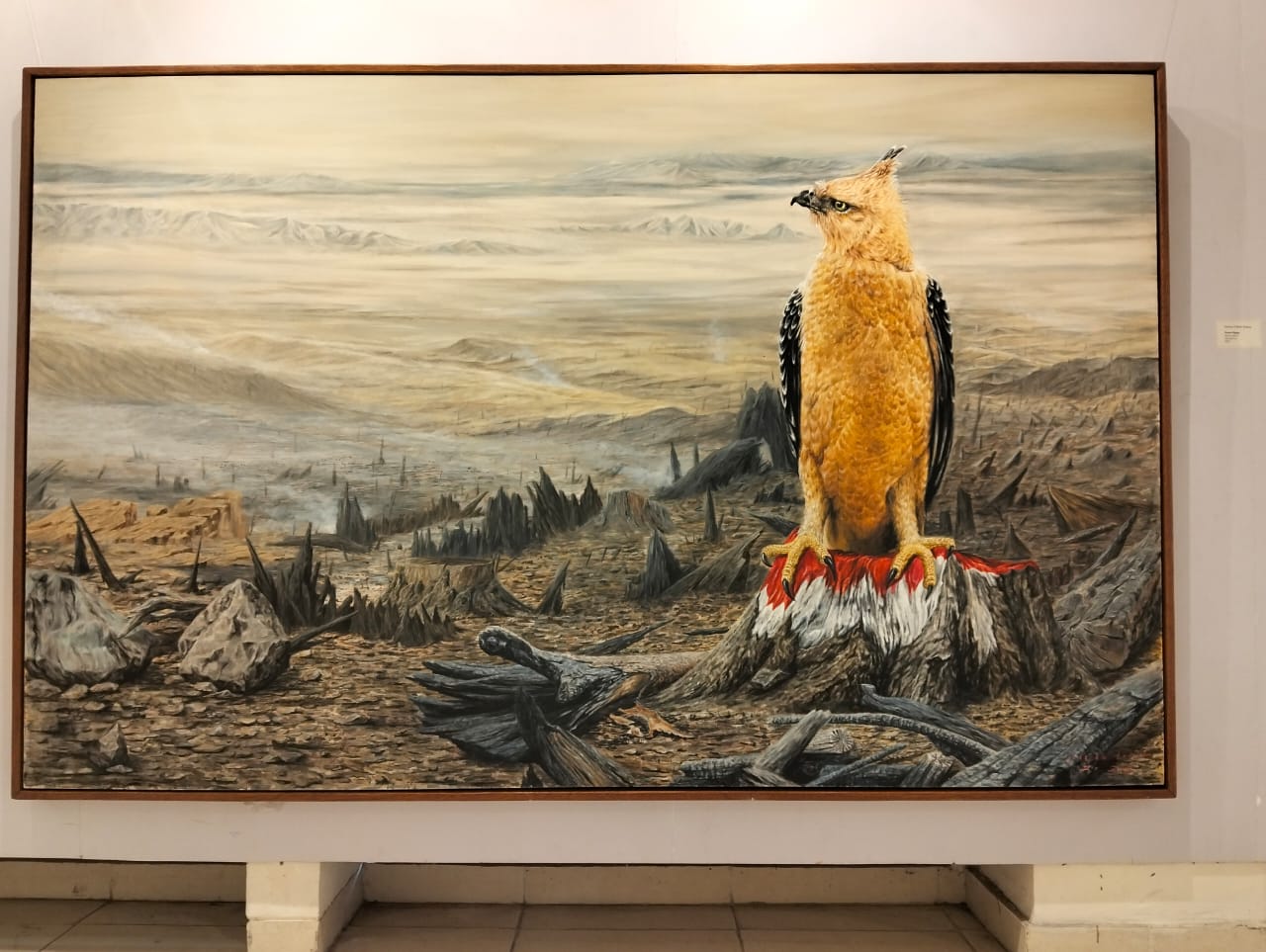 Dari burung garuda di lukisan Awas Sigap 145×200 cm itu sedikitnya menjawab: bingung. Bukan bangkit. [T]