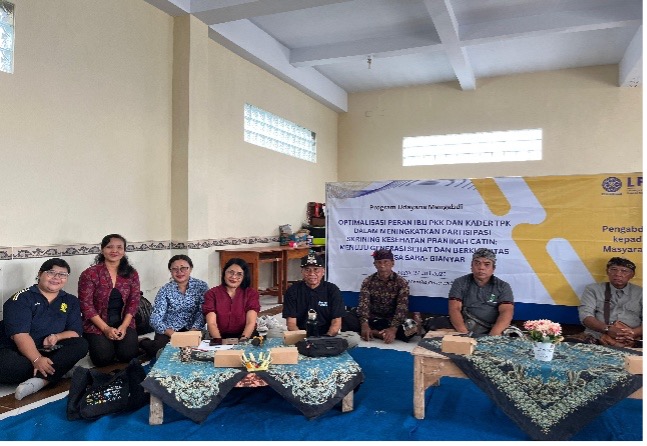DALAM upaya mendukung program kesehatan pranikah guna mewujudkan generasi yang sehat dan berkualitas, tim dosen dan mahasiswa KKN Universitas Udayana melaksanakan kegiatan pengabdian masyarakat bertema “Optimalisasi Peran Ibu PKK dalam Meningkatkan Partisipasi Skrining Kesehatan Pranikah” di Desa Saba, Kecamatan Blahbatuh, Kabupaten Gianyar, pada 27 Juli 2025.