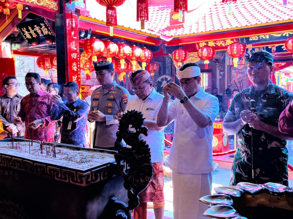 Bupati Sutjidra dan Wakil Bupati Buleleng Gede Supariatna bersama pejabat lain di Buleleng melakukan doa bersama di TITD Ling Gwan Kiong, Pelabuhan Tua Buleleng