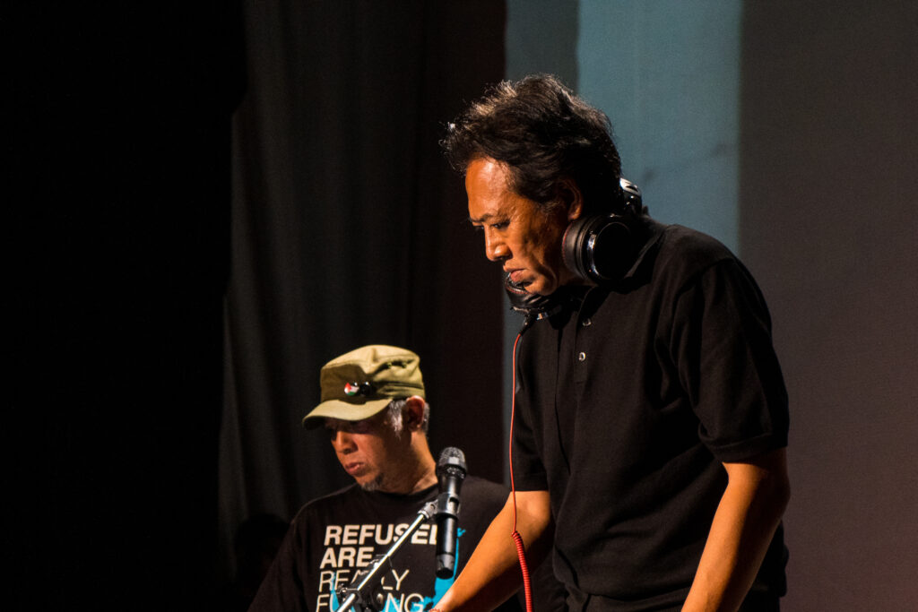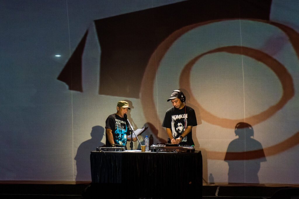 Diawali Marlowe Bandem dan Adi Pratama dengan set DJ yang santai, nyaris menyerupai suasana kafe larut malam—untuk yang ini, udara seperti dipenuhi kesan yang lebih pekat. Proyektor dari utara menembakkan visuan-visual cadas, horor, retakan-retakan noise ala 90-an, cuplikan video yang membawa kembali aroma tahun 1998—masa ketika jalanan Indonesia bergetar oleh perlawanan dan aparat bersiaga di setiap sudut.