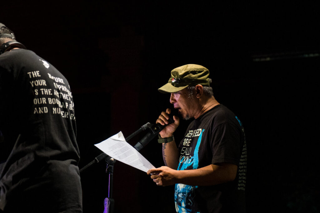 Namun, puncak malam itu datang ketika Ucok membawakan “Sajak Suara” karya Wiji Thukul, sang legenda yang hilang. Sebelum memulai, ia menutup pengantarnya dengan kalimat menggetarkan. “Selamat kepada kalian semua, semoga kalian berbahagia, karena kalian telah memilih penculik sebagai pemimpin kalian saat ini”.