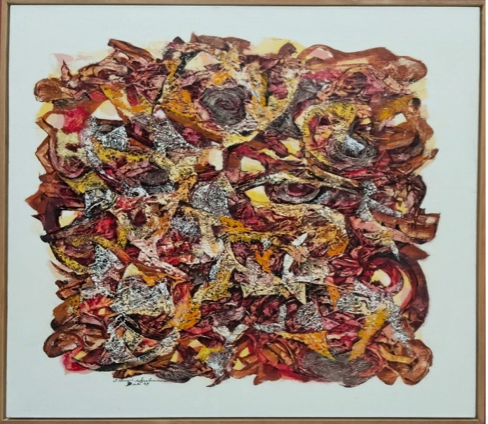 Lukisan itu sekilas tidak memiliki bentuk, tetapi saat saya memandang lebih lama saya teringat pada ekosistem bawah laut, yaa, itu seperti karang laut yang sudah lama terendam asinnya air laut. Warnanya yang indah memberikan kehangatan seperti hangatnya hubungan manusia dan alam jika manusia tidak merusaknya. Karya ini bisa juga sebagai gambaran bagaimana seharusnya manusia menjaga alamnya dengan lebih baik. Warna putih yang tersisa pada kanvas mengartikan sisa dan harapan yang diberikan untuk tetap menjaga hubungan antara  dua makhluk hidup tersebut.