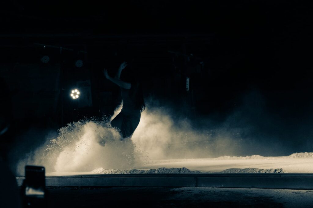 Dramaturginya sarat dualitas: tangan kiri terbuka mengajak negosiasi, tangan kanan mengepal menyimpan perlawanan. Gerak berulang menjadi mantra yang mengikat penonton, mengajak mereka membaca tubuh sebagai bahasa berlapis.