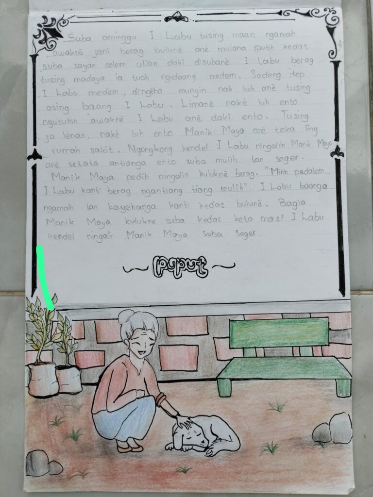 Hasil belajar siswa berupa cerita bergambar dengan pendekatan diferensiasi. Luh Suci Armini Putri sebagai Penulis Cerita dan Kadek Wiwin Riska Ariyani sebagai ilustrator