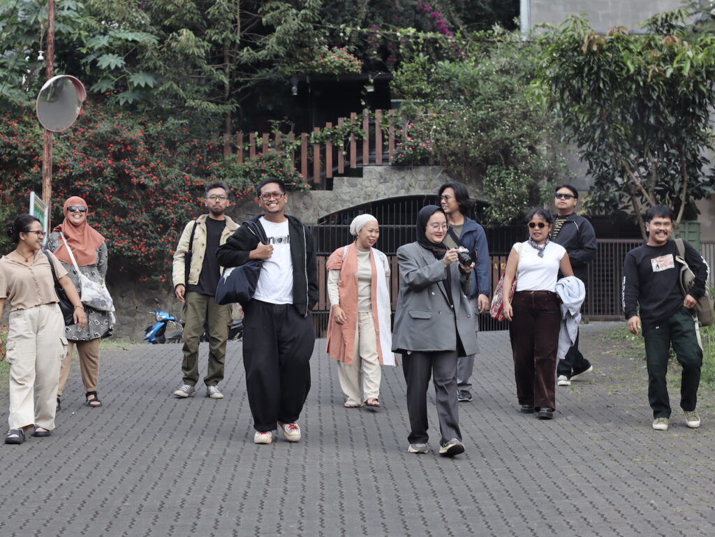 Para seniman peserta Terap Festival #2 bersama narasumber memulai sesi inkubasi dengan menjelajahi ruang kota—membaca lanskap Bandung sebagai panggung hidup | Foto: Adi Pirmansyah
