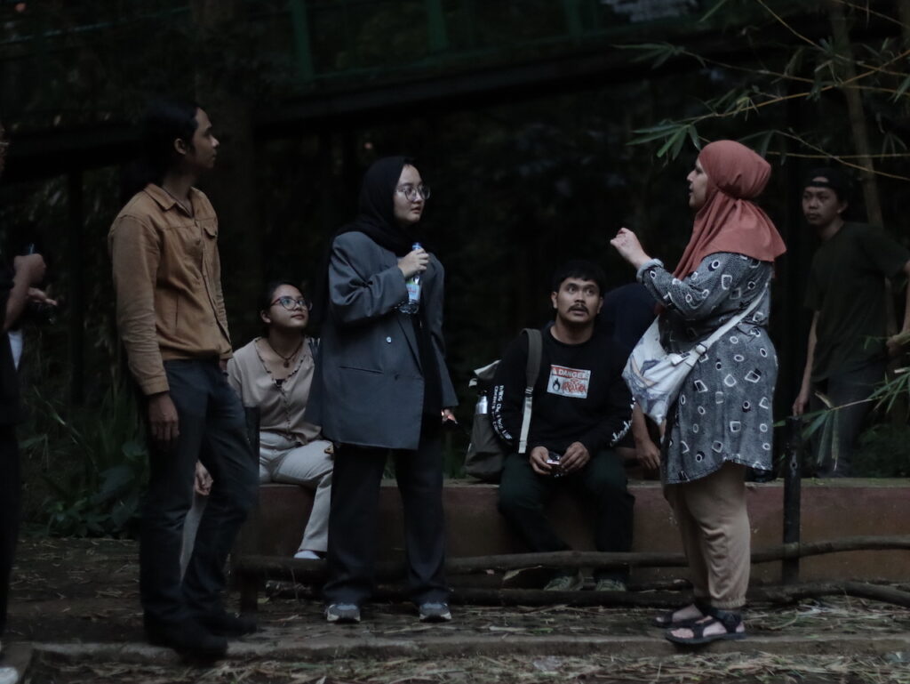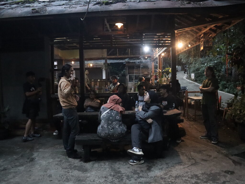 Percakapan intens antara seniman dan narasumber di ruang terbuka, merumuskan bagaimana praktik teater dapat bersentuhan langsung dengan ekologi sosial dan lingkungan. | Foto: Adi Pirmansyah
