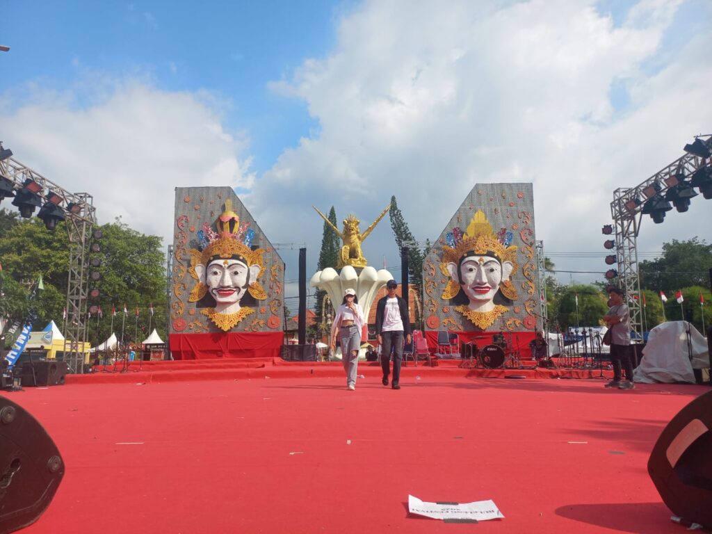 Dua topeng di panggung utama Bulfest 2025 sebagai latar untuk berfoto | Foto: Ganesha