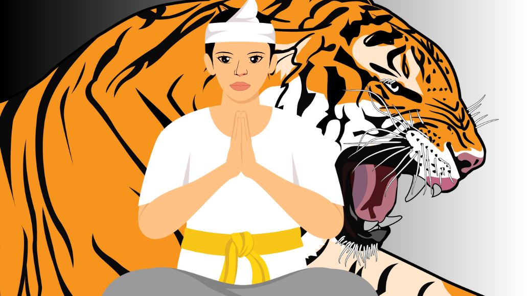 Lamat-lamat dari dalam gua, terdengar auman harimau semakin menjauh seperti merintih kesakitan dan kehausan. Orang-orang itu ingat. Jika aumannya tak lagi terdengar bencana sewaktu-waktu bisa datang. Pamangku yang menghaturkan guru piduka memohon ampun pada penjaga hutan larangan. Beberapa orang yang ikut menghanturkan sajen guru piduka mulai kemasukan ruh harimau, saling terkam antar sesama dan saling cakar. Kuku jemarinya meruncing. Matanya mendelik. Kulihat taring harimau di mulutnya. Ruh harimau tak terima hutan larangan diganggu. “Kembalikan hutan ini! Kembalikan hutan ini!” salah seorang yang kerauhan berteriak-teriak.