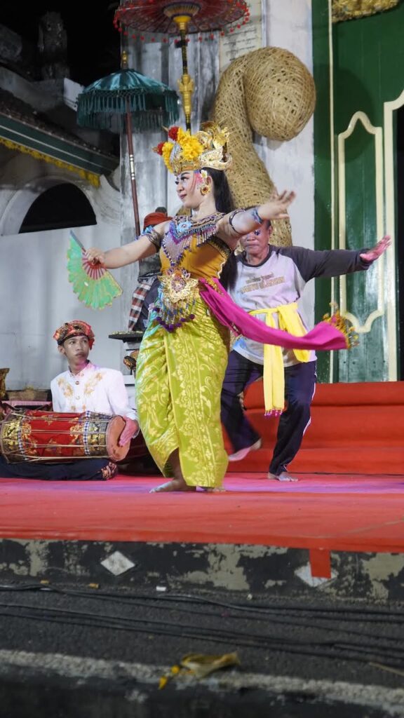 PENAMPILAN joged bumbung dari Sanggar Seni Dharma Shanti, Desa Bila, Kubutambahan, memikat penonton di Buleleng Festival (Bulfest) 2025. Joged ini tampil di Puri Kanginan, Sabtu 23 Agustus 2025 dengan membawakan tiga garapan apik yaitu Tabuh Kreasi Malpi Yowana, Tari Joged Sekar Jepun, dan Tari Joged GelatikNuut Papah.