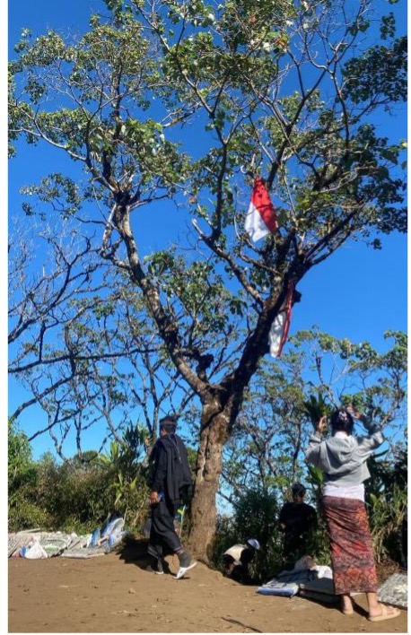 Memasang bendera merah putih mungkin dilakukan untuk merayakan momen perayaan ulang tahun Kemerdekaan RI. Apakah itu menunjukkan jiwa nasionalis mereka tinggi? Rasanya tidak perlu sampai seperti itu, atau lebih tepatnya tidak perlu menaikan bendera dengan memanjat pohon di areal suci Pura.