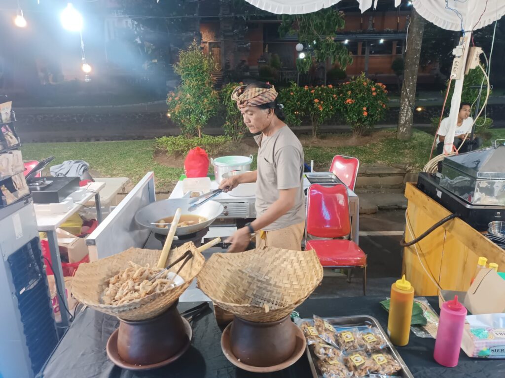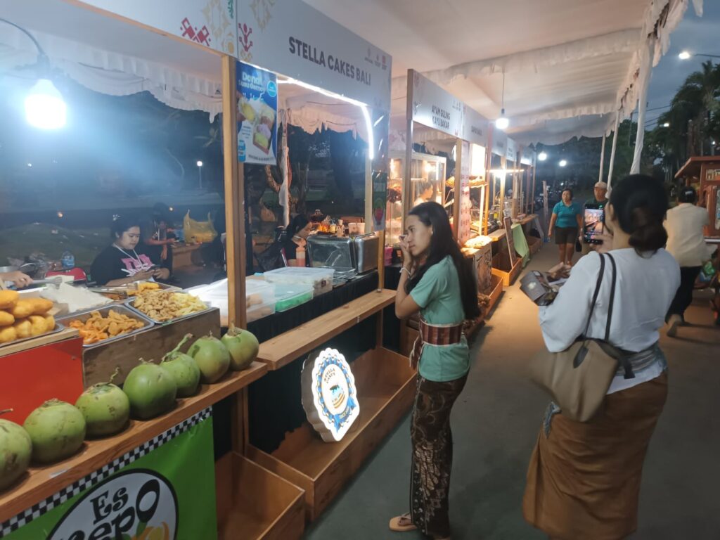 Sebut saja misalnya Warung Gandrung yang menggunakan ‘kukusan” (salah satu alat untuk menanak nasi), stand Ayam Guling Bakar yang menghias stand dengan “saang” (kayu bakar), serta ada menjual Rella Cakes Bali, Kopi Jalanan dan lainnya.