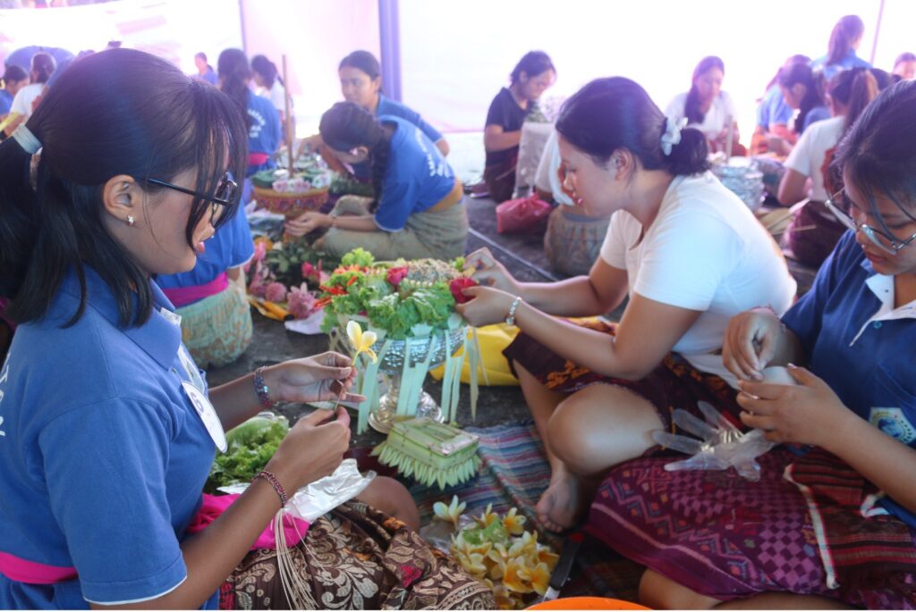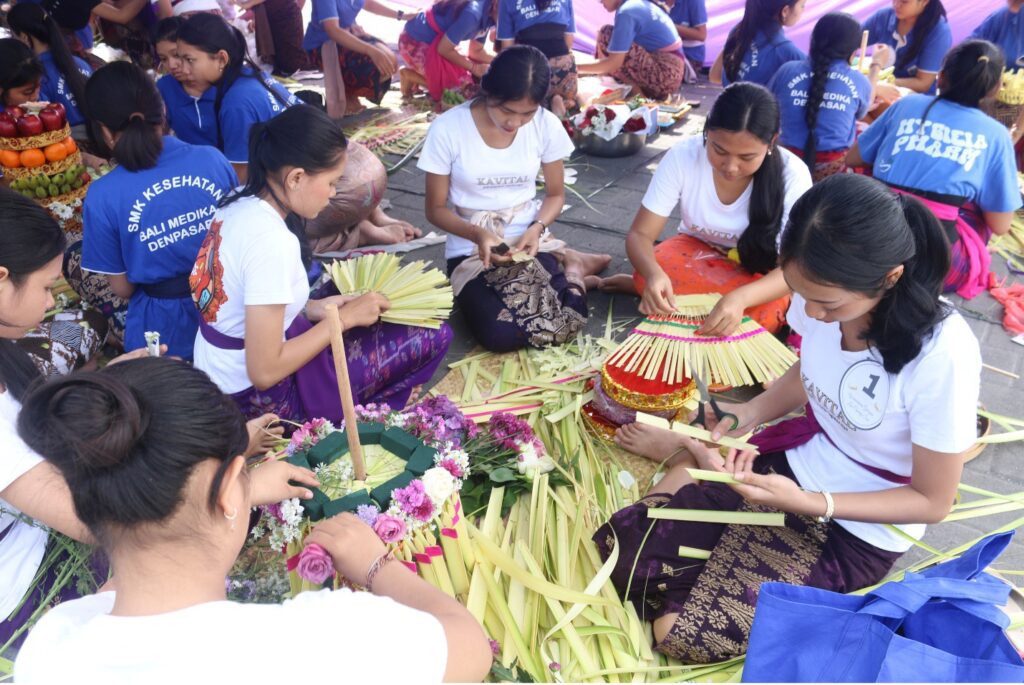 Lomba membuat gebogan canang sari memperingati Hari Suci Saraswati di SMK Kesehatan Bali Medika Denpasar│Foto: Dok. OSIS Kesbam