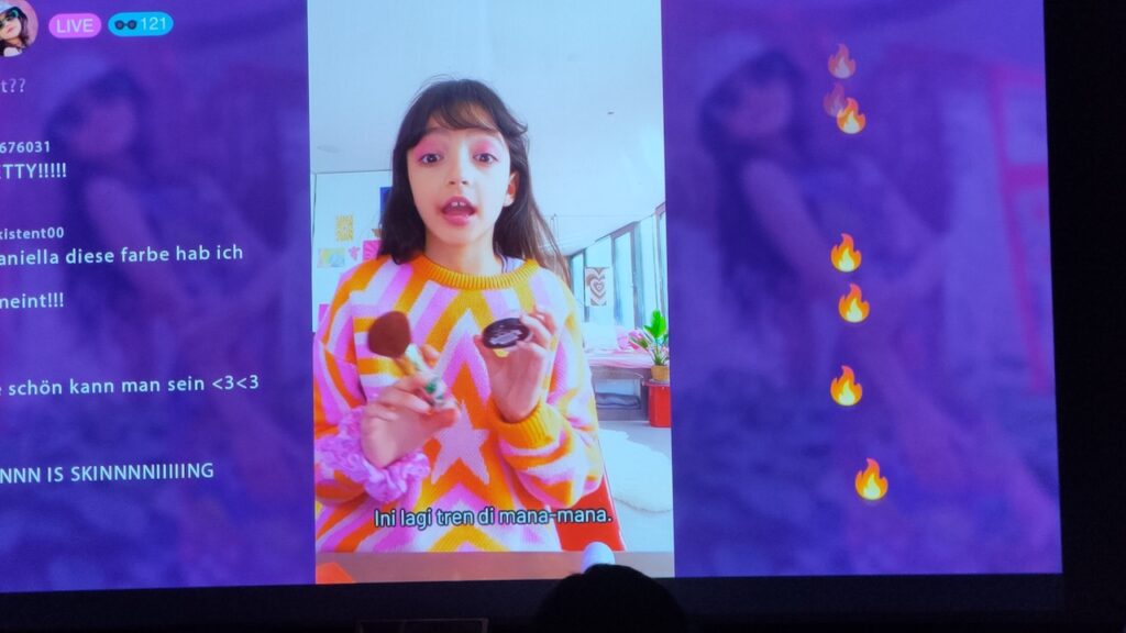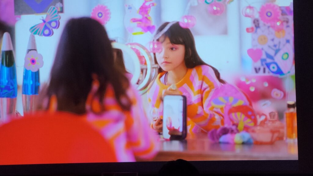 Dengan kegelisahan dan rasa penasaran, Ava berbohong dan kembali ke rumahnya. Adegan selanjutnya, memperlihatkan Ava dengan suasana yang agak “kosong secara emosional” meskipun secara visual penuh aktivitas digital. Adegan selfie, dance TikTok-like, tutorial make-up live, semua dipilih bukan sekadar sebagai dekorasi, melainkan sebagai lapisan tekstur yang menunjukkan betapa normalnya perilaku semacam itu bagi anak zaman sekarang. Adegan-adegan itu sekaligus digunakan sebagai alat oleh sutradara untuk membangun ketegangan internal.