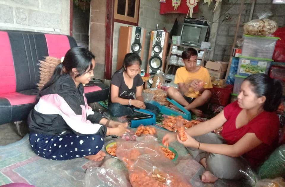 SUASANA rumah sederhana milik keluarga Putu Arnaya (40) di Banjar Dinas Tamblingan Desa Munduk, Buleleng, setiap hari selalu dipenuhi kesibukan. Di ruang tamu yang beralaskan tikar, suara plastik direkatkan dan aroma gurih camilan yang dibungkus memenuhi ruangan. Bersama istrinya, Ketut Partiani (39), serta kedua anaknya, Putu Ekariani (27) dan Kadek Hendriana (22), Putu Arnaya menekuni usaha rumahan yang mereka beri nama Dex Pande Cemilan.