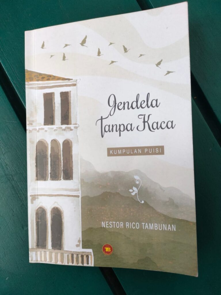 BEBERAPA hari lalu, saya menerima sebuah kiriman istimewa dari Bang Nestor Rico Tambunan: sebuah buku puisi yang langsung memanggil mata dan rasa sejak pertama disentuh. Sampulnya menampilkan lukisan sebuah gedung dengan jendela-jendela tanpa kaca, latar pegunungan yang hening, dan segerombolan burung yang terbang semuanya tersaji dalam gradasi monokrom, seakan membawa kita masuk ke ruang waktu yang tak pernah selesai diceritakan. Buku setebal 70 halaman ini diterbitkan oleh TB pada Agustus 2025, namun hadir di tangan saya bukan sekadar sebagai bacaan, melainkan sebagai undangan untuk menyimak suara sunyi yang ditorehkan penyair di antara kaca yang absen dan pandangan yang terbuka lebar.
