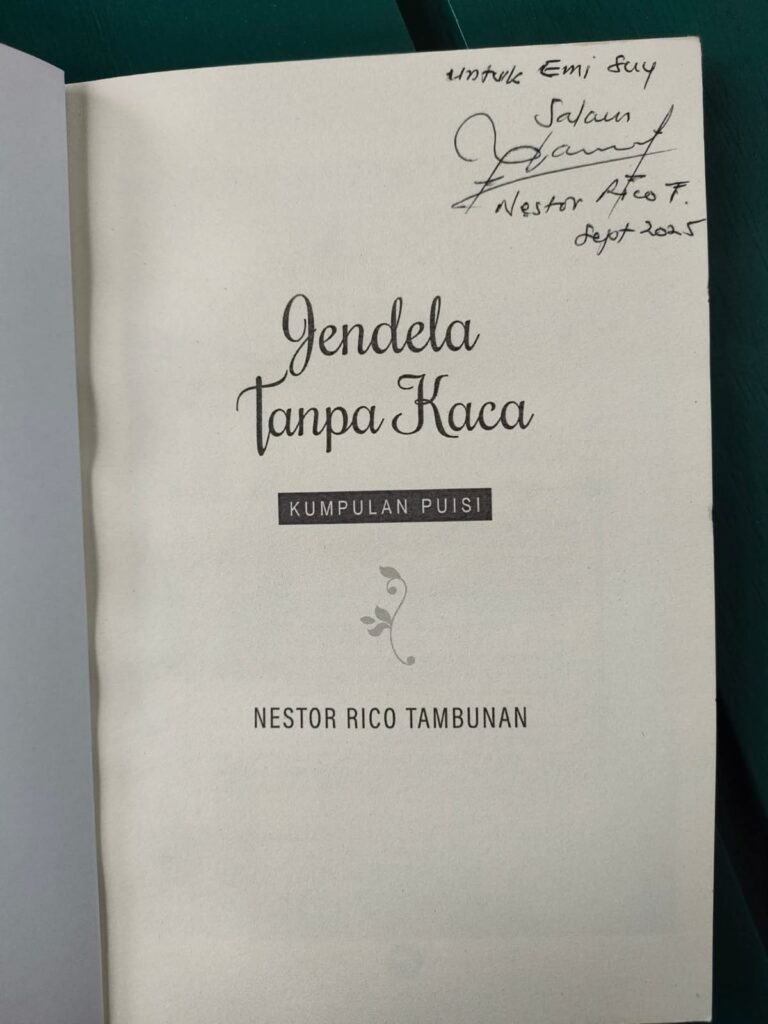 Di antara banyak buku puisi yang lahir di negeri ini, Jendela Tanpa Kaca karya Bang Nestor Rico Tambunan menempati ruang yang berbeda. Ia tidak sibuk membangun metafora megah, tidak pula mengejar kemewahan diksi. Buku ini justru hadir dengan kesederhanaan yang rawan, seakan-akan sebuah jendela dibiarkan terbuka tanpa kaca: siapa pun bisa menengok keluar, siapa pun bisa masuk, debu dan hujan bisa menerpa kapan saja. Dari kerapuhan itulah puisi-puisi ini memperoleh tenaganya.
