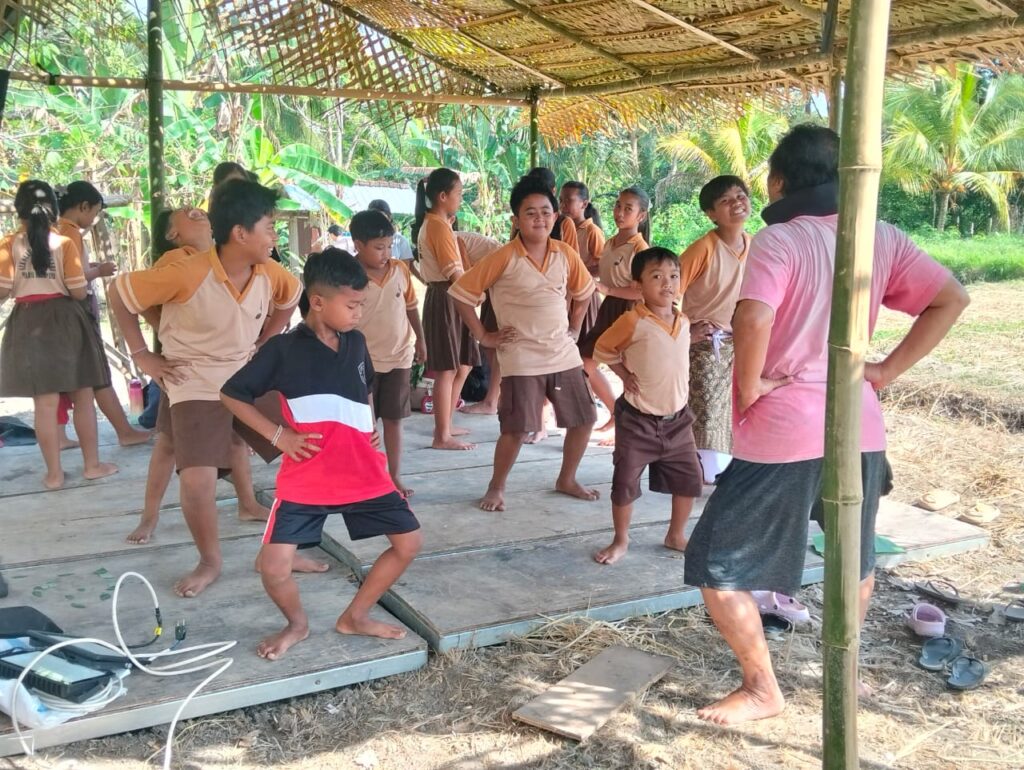 Workshop latihan tari dasar untuk anak-anak itu merupakan bagian dari serial acara Festival ke Uma V, di Subak Sidangrapuh, Banjar Ole, Desa Marga Dauh Puri, Tabanan, Minggu, 28 September 2025.