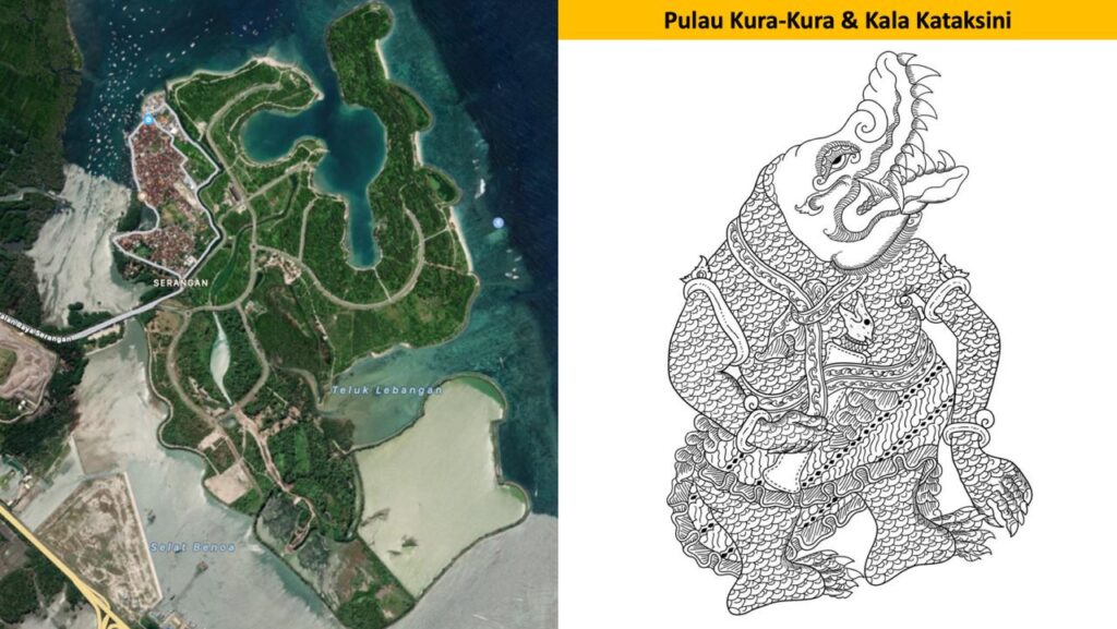 Bagi mereka yang akrab dengan pewayangan Bali dan Jawa, tak pelak wajah bopeng berantakan Pulau Kura-Kura hasil reklamasi sekitar 400 hektar lebih ini serupa penampakan wajah seram keraksasaan Bhuta Kala Wilkataksini atau umumnya disingkat Kala Kataksini.