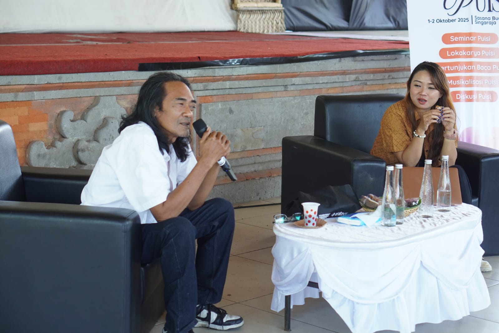Penyair Pranita Dewi dan Nanoq da Kansas menjadi narasumber di acara itu. Mereka lebih dulu menjelaskan apa itu—dan bagaimana menulis puisi, juga penyair melihat sesuatu yang bernilai puitik.