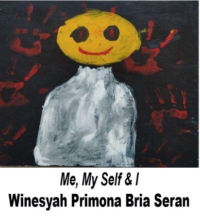 Yang tak kalah menariknya adalah karya Winesyah Primona Bria Seran yang menghadirkan 3 buah karya. Salah satu karyanya yang saya suka adalah Me, My Self & I. Bagi saya, karya ini merupakan refleksi yang mendalam oleh pelukisnya.