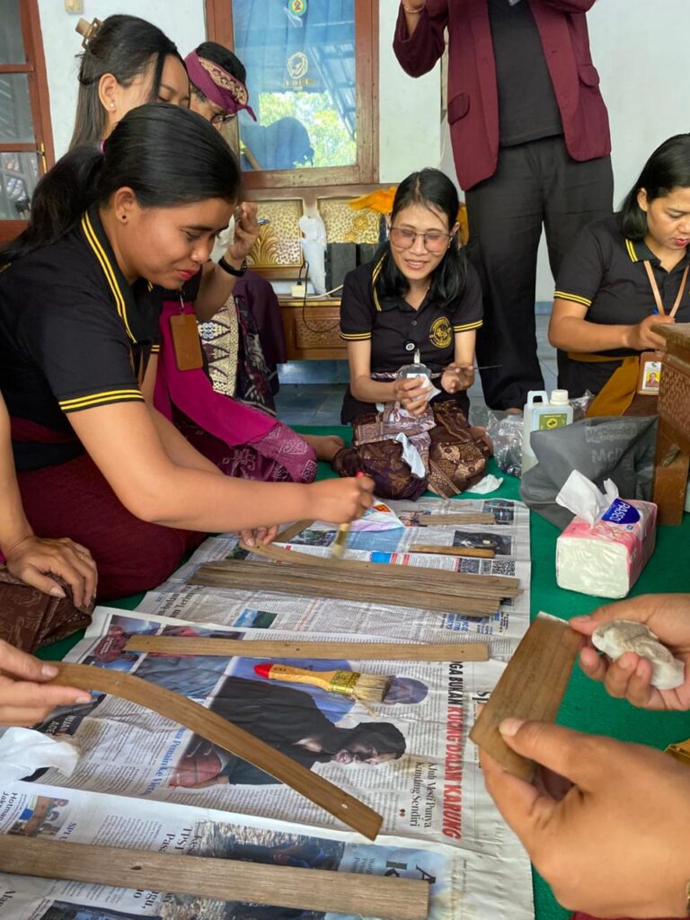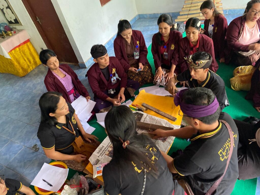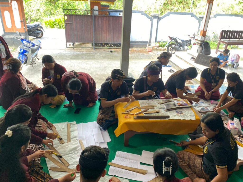 Di sanalah tersimpan lima lontar warisa desa, peninggalan yang telah berpindah tangan dari satu generasi ke generasi berikutnya. Hari itu, rombongan dari penyuluh Bahasa Bali Kecamatan Sukasada yang berakar dari Dinas Kebudayaan Provinsi Bali datang, bersamaan dengan para mahasiswa IAHN Mpu Kuturan, khususnya dari program Studi Bahasa Bali yang sedang menjalankan KKN di desa tersebut. Tujuannya sederhana tapi tersirat sakral, membersihkan lontar-lontar yang mulai rapuh dimakan waktu.