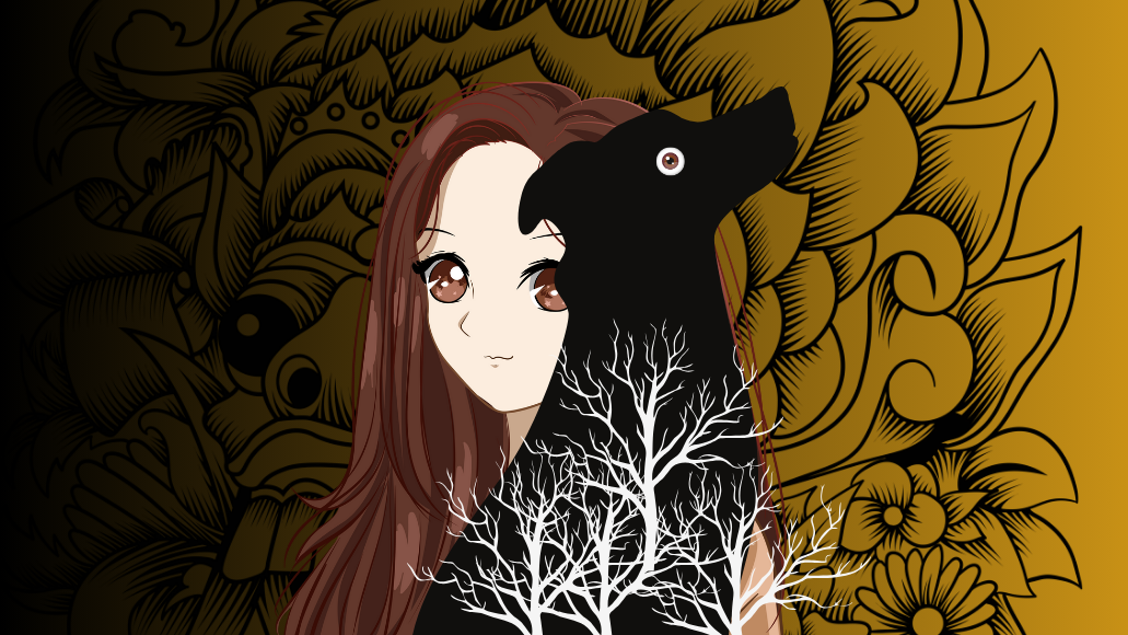 Saat aku menatap matanya dengan seksama, entah kenapa tiba-tiba perempuan yang berparas ayu, berkulit putih, berambut hitam panjang itu tiba-tiba berubah wujud menjadi seekor anjing. Anjing yang berbulu lebat, dengan mata yang merah menyala, bergigi dan berkuku tajam, yang selalu menjulurkan lidahnya. Dari lidahnya meneteskan air liur yang berbau busuk. Aku mulai merinding. Seketika aku membuang tatapan mataku yang tadi terpaku pada matanya, dan bergegas pergi dari tempat itu.